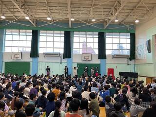 2月最初の集会は、先生クイズでした。先生の特徴などを集会委員が3つ挙げ、先生の名前をみんなで当てるクイズです。好きな教科、、好きなこと、得意なことなど集会委員のヒントをもとに、どの先生か全校児童で考えました。