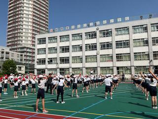 体育学習発表会に向けて全校練習を行いました。1回目の全校練習は、開会式についてです。校庭での整列の仕方や、ラジオ体操など、代表委員会や運動委員会の児童が中心になって行いました。