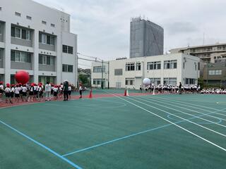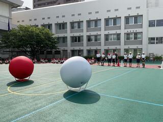 体育学習発表会に向けて大玉送りの全校練習を行いました。初めて見る大きな大玉に驚く1年生、大玉送りのサポートをする高学年の児童。みんなで協力しながら赤白が競い合って練習をしました。本番は赤白どちらが勝つか楽しみです。