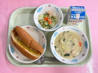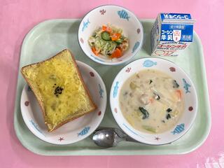 10月17日(金) 牛乳 さつまいもトースト 白菜とホタテのクリームシチュー レモンドレッシングサラダ
