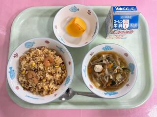 10月22日(水) 牛乳 えびチャーハン 豆腐入り五目スープ 柿