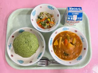 10月20日(月) 「有機野菜給食」 牛乳 有機野菜のカレーライス コーン入り和風サラダ りんご