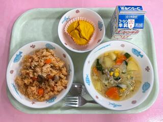 10月31日(金) 牛乳 チキンライス 野菜スープ パンプキンマフィン