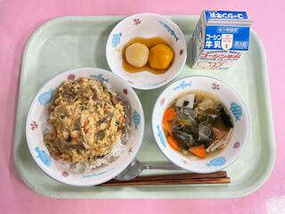 10月6日(月) 「十五夜献立」 牛乳 あぶたま丼 里芋のしょうが汁 二色月見団子