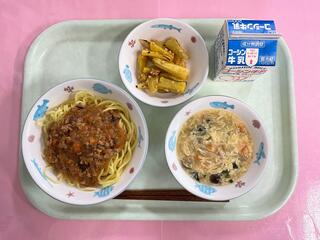 11月6日(木) 牛乳 ジャージャー麺 さつまいもの密がらめ きのこと卵のスープ