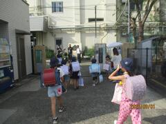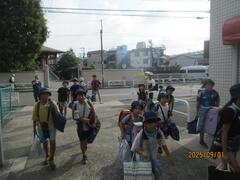 今日は台風による大雨のため、各学年方面別の集団下校を行いました。大雨での下校で大変でしたが、傘のさし方、歩道の歩き方など安全に気を付けて下校しました。