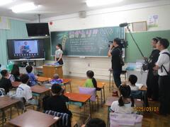 夏休み明けの子供たちの様子を撮りに、テレビ朝日の取材が来ました。児童朝会や学級の様子を撮影しました。子供たちの元気な姿を撮ってもらいました。