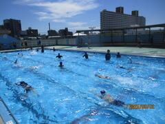 今日の中休みは、暑さ指数が28.4だったので外遊びを行うことができました。風は強かったですが、子供たちは元気に遊んでいました。6年生は夏休み前最後のプールで検定を行っていました。昼休みも外遊びができました。