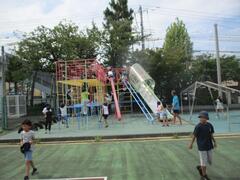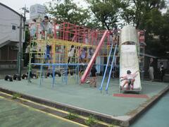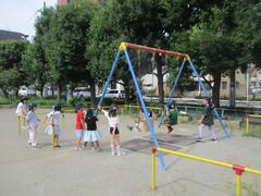 プール棟の解体工事のため、校庭の遊具であるジャングラミンやうんてい、登り棒で遊べるのは今週で最後です。今日も暑い日でしたが、昼休みは外遊びができたので遊具で遊ぶことができました。