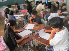 今日は2年生から6年生までは区の学力調査を行いました。2・3年生は国語と算数、4年生以上は国語、社会、算数、理科を行いました。6年生は英語も受けました。子供たちは最後の問題まで真剣に頑張っていました。