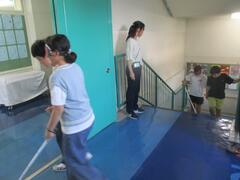 A時程の日は給食後お掃除を行います。教室や廊下など自分たちが使うところを掃除しました。低学年には、5・6年生が来てくれてお掃除のお手伝いをしてくれました。