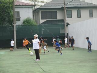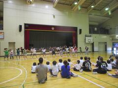 今日は八広小の体育館でキンボール体験教室がありました。指導員の方にルールを教えてもらい、大きなボール(キンボール)を使ってゲームをしました。八広小の子供たちもたくさん参加しました。