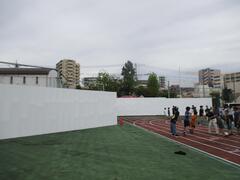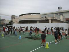 今日は体力テストで、全学年がソフトボール投げを行いました。投げる角度と反対側の腕がポイントです。学年ごとに時間を決めて行いました。前日に先生方がラインを引いてくれたのでスムースにできました。