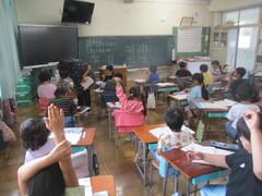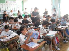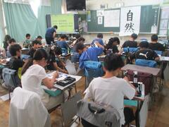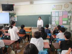 今日は夏休み前の最後の登校日です。朝礼を行い、夏休みの生活についてお話を聞きました。長い夏休み、車に注意するなど安全に気を付けて過ごせるといいですね。今日は、授業で勉強を頑張っているクラス、大そうじやお楽しみ会を行っているクラスもありました。