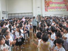 今日は体育館で演劇鑑賞教室がありました。劇団「仲間」の方々が来て、「給食番長」というミュージカルをしてくれました。子供たちもとても面白く、見ることができました。