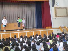7月10日 児童集会 保健委員会、給食委員会の発表がありました。