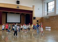 今日は4回目の「たてわり班遊び」でした。朝のWBGTが基準値を超えていたため、校庭遊びの班は室内遊びになりました。写真は体育館遊びの班です。20分休みは外で遊べましたが、大粒のお天気雨が途中から降ってきました。